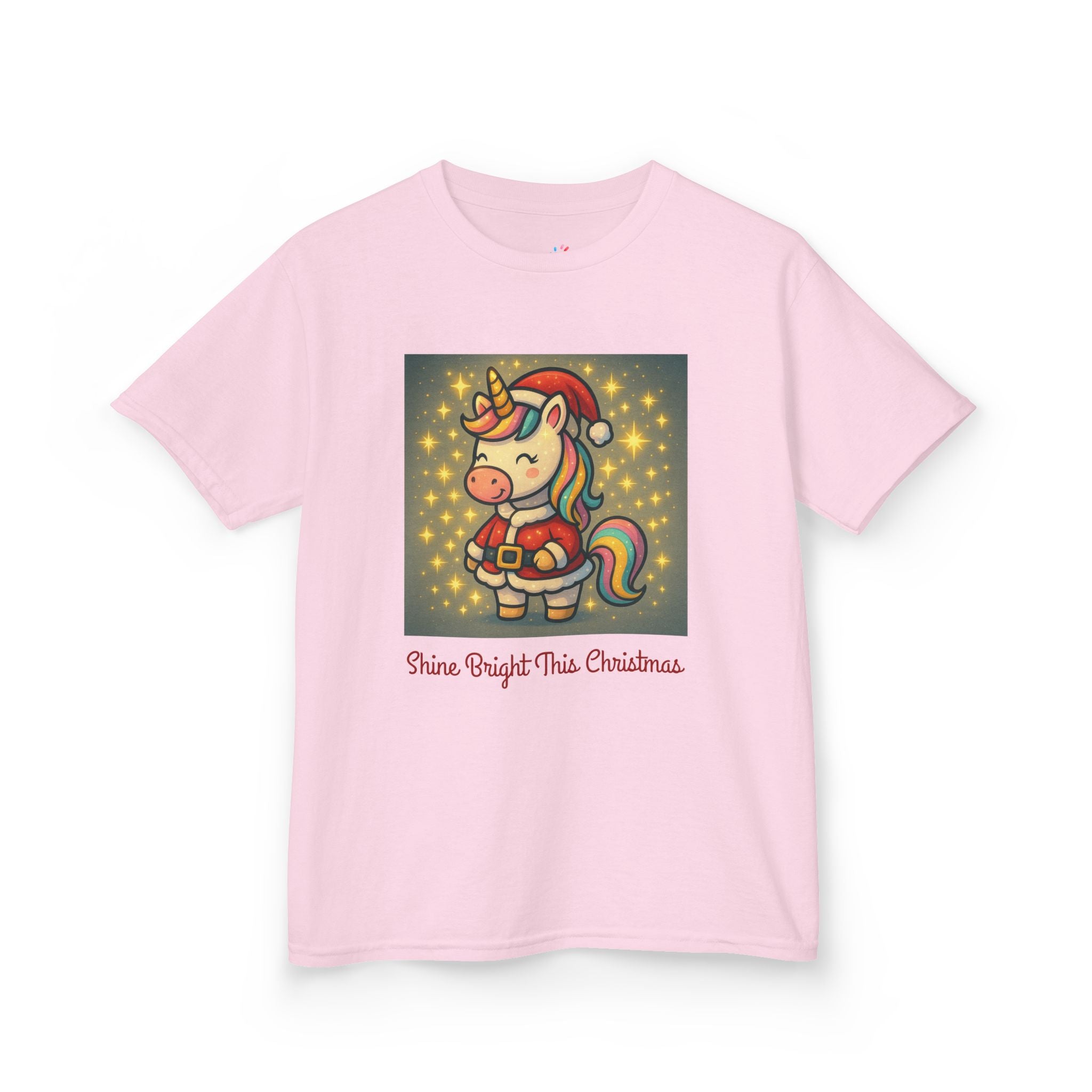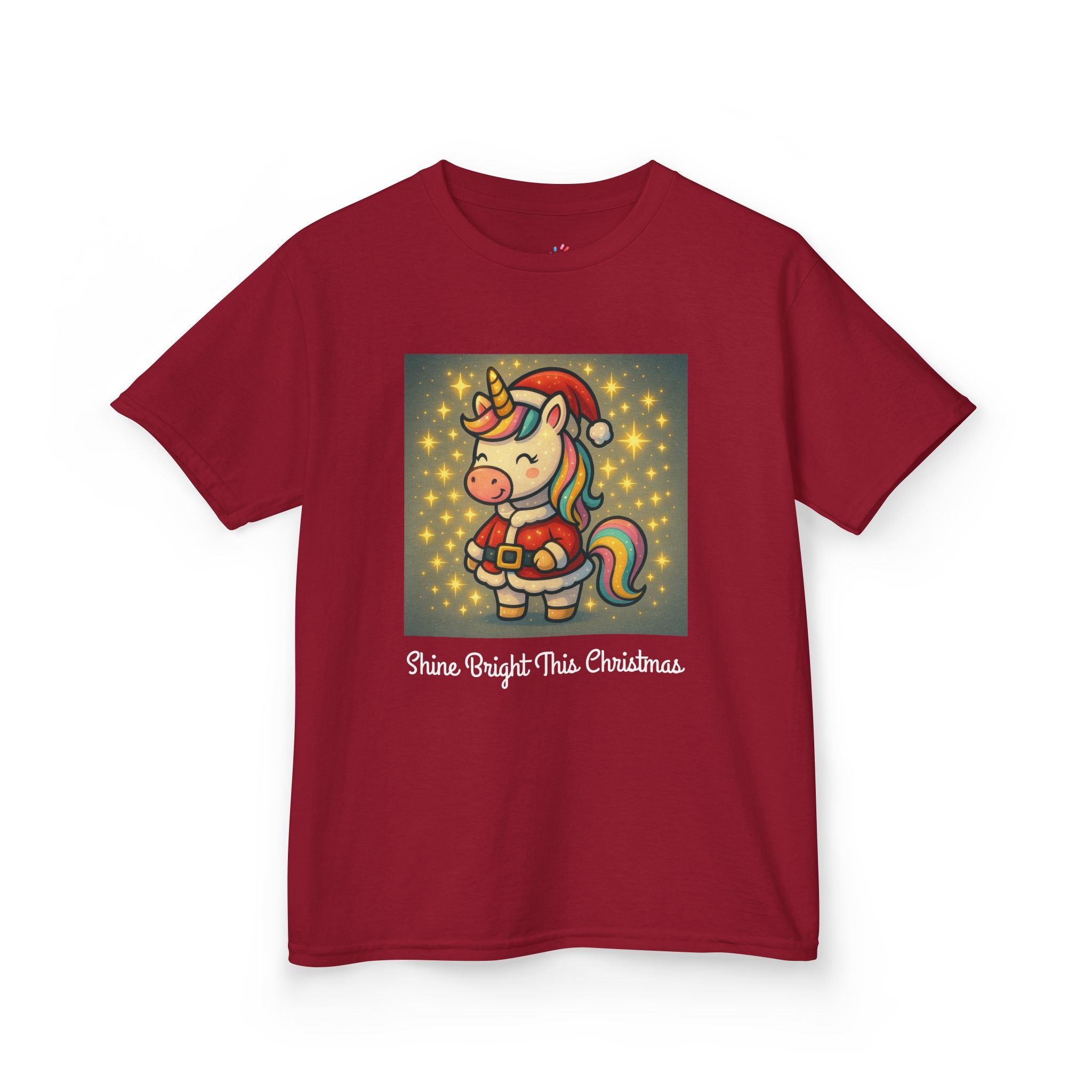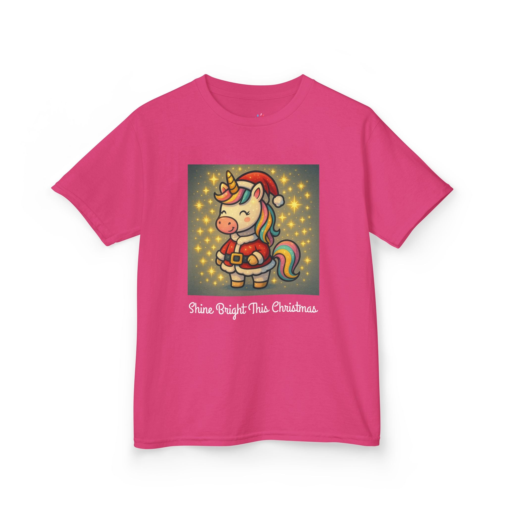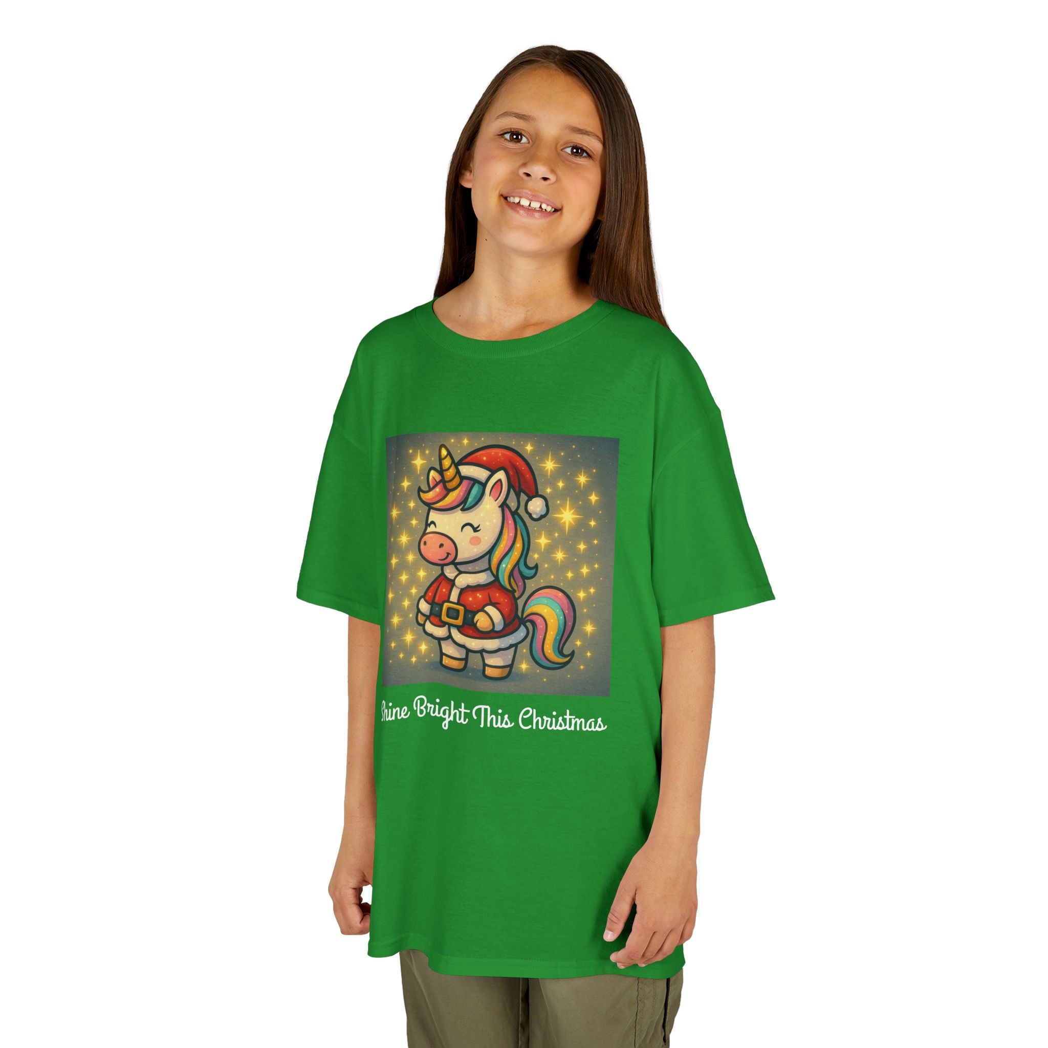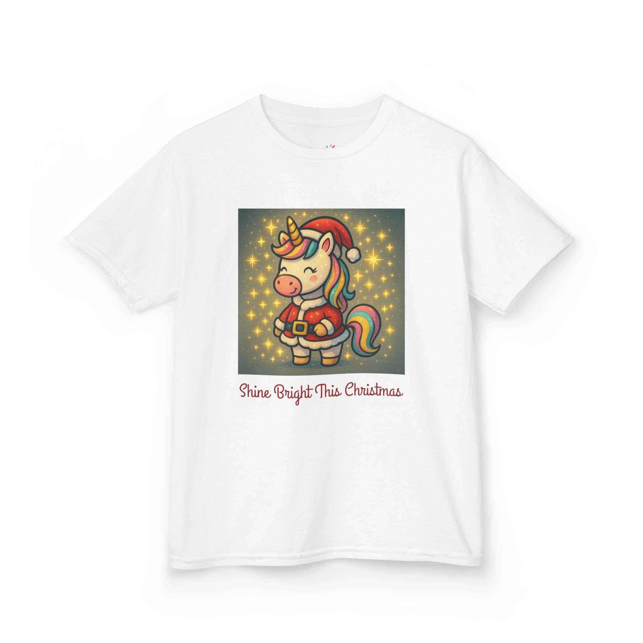 Kids Christmas Unicorn Tee — "Shine Bright This Christmas" Holiday Shirt