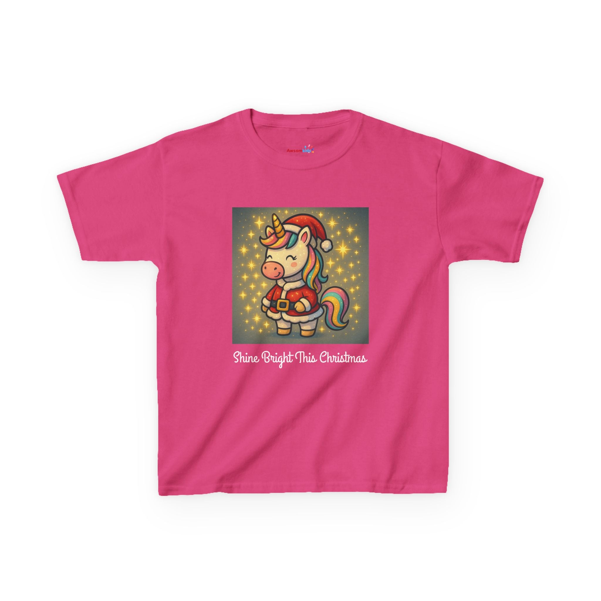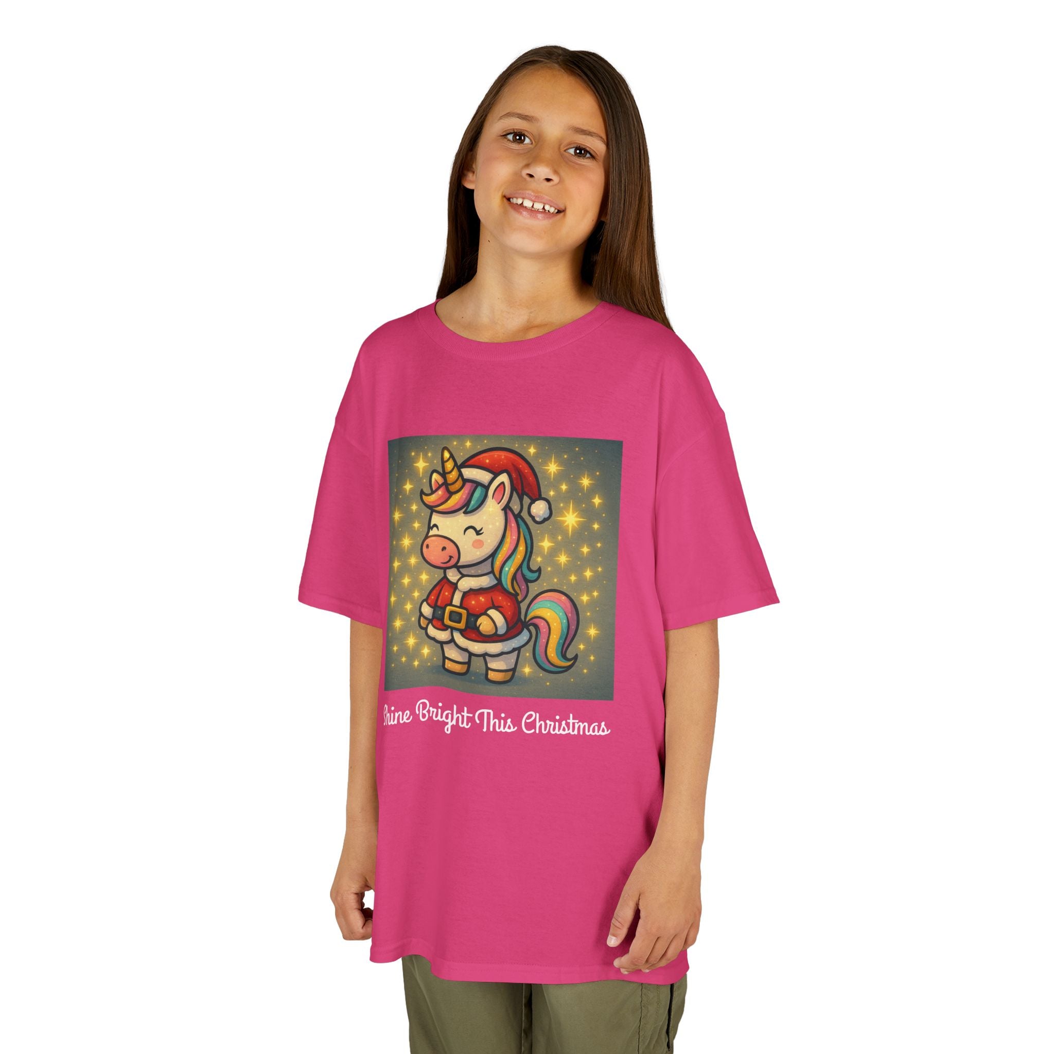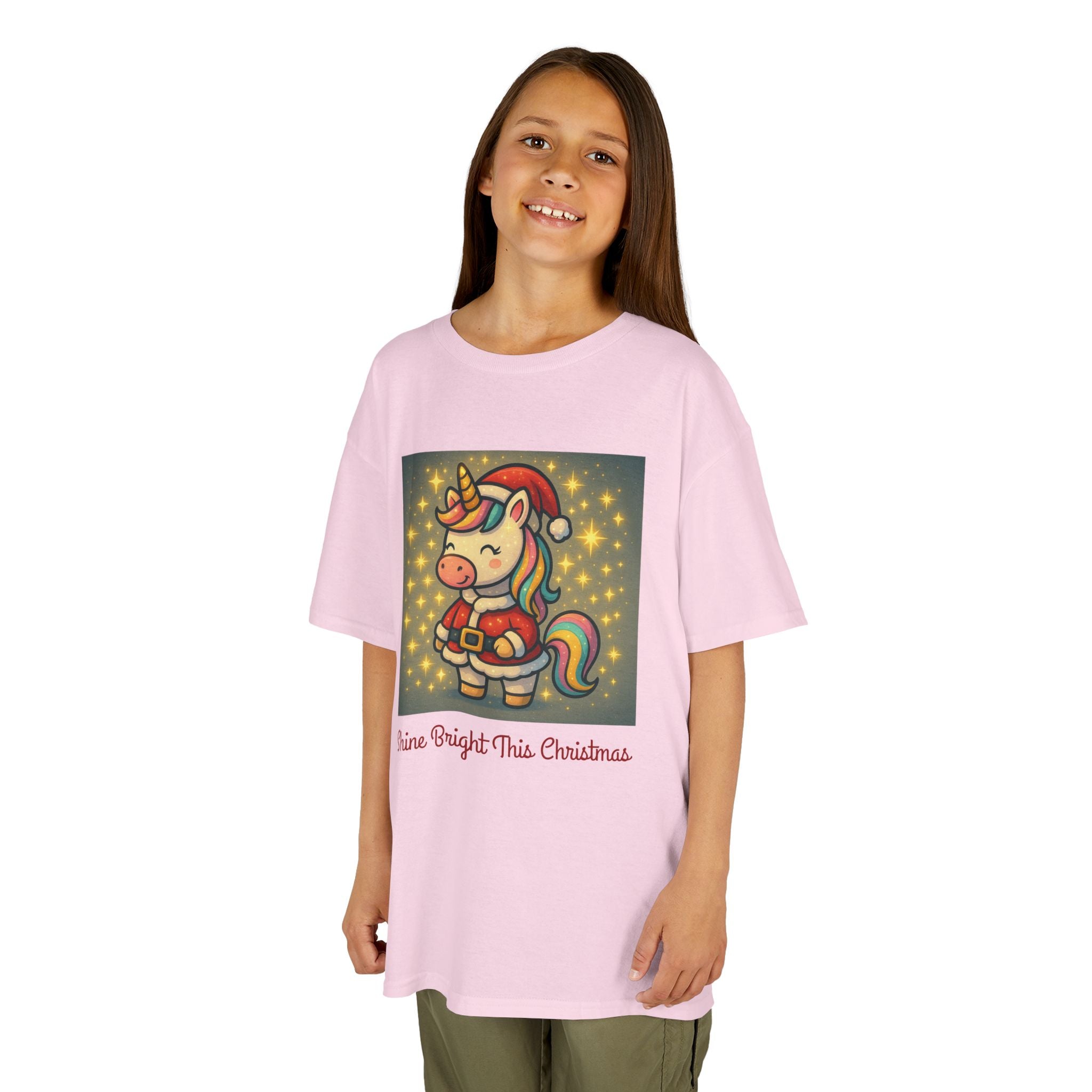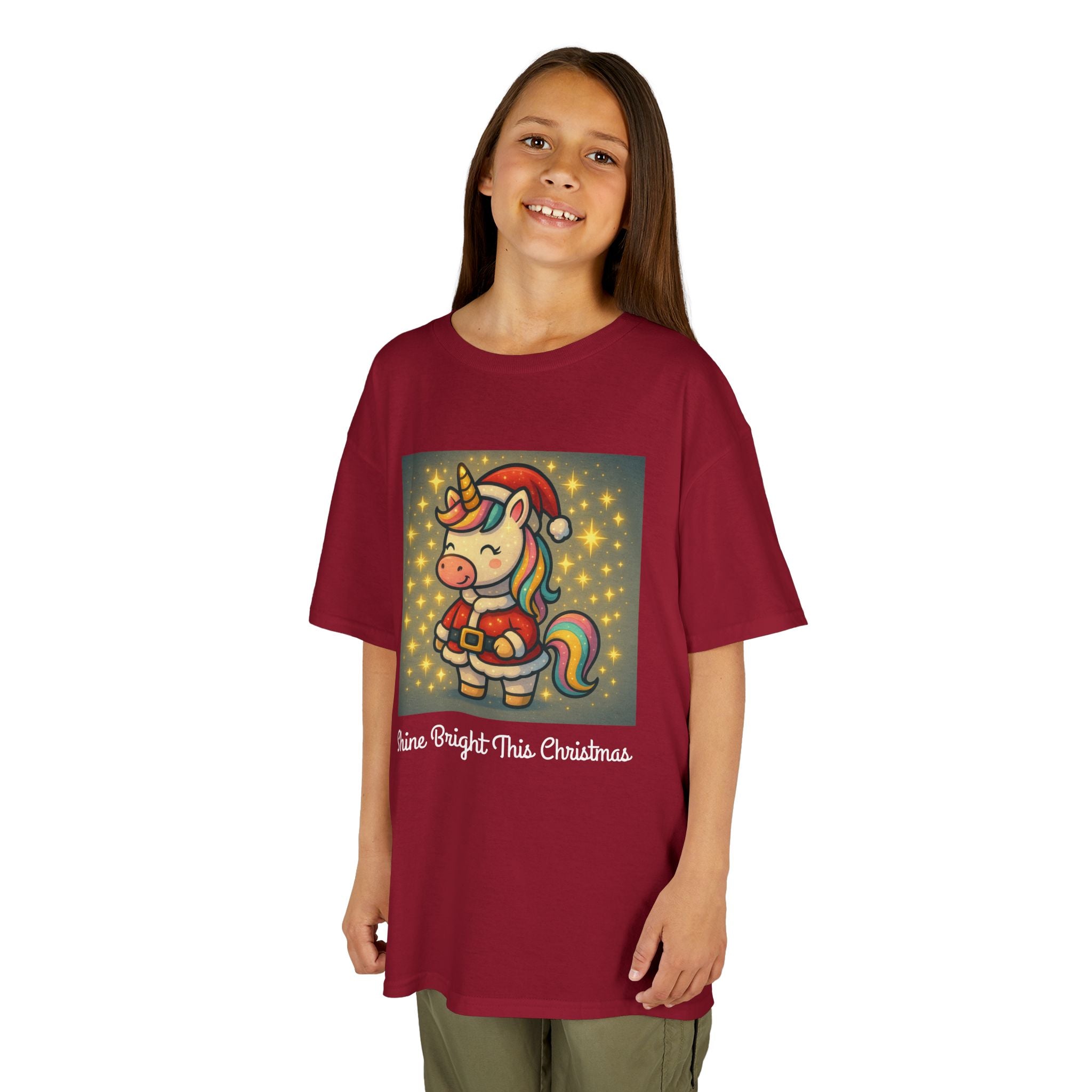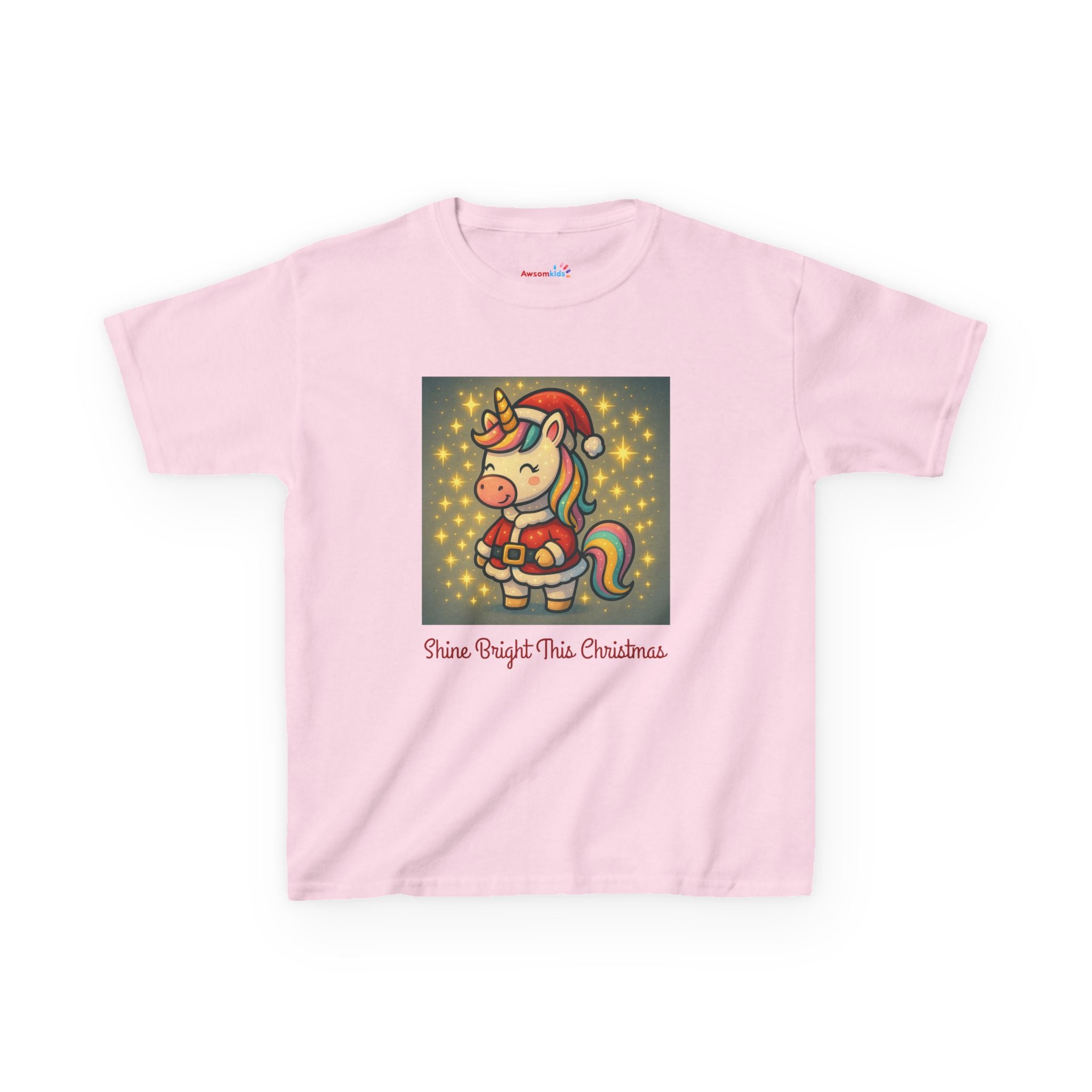 Kids Christmas Unicorn Tee — "Shine Bright This Christmas" Holiday Shirt
